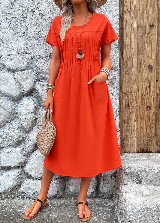 Robe À Manches Courtes & À Col Rond